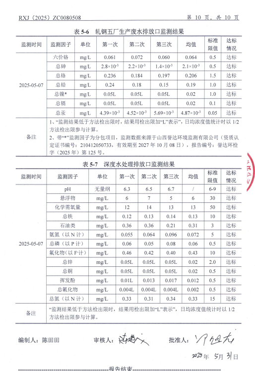 2025年5月份水污染物自行監(jiān)測(cè)